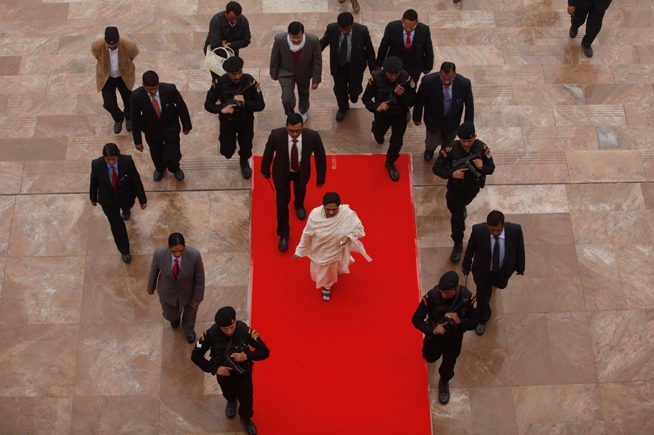 Like Jayalalithaa and Mamata Banerjee, Mayawati operates with an army of bureaucrats as her trusted lieutanants instead of political leaders from her party. “This is to stay away from the constant scrutiny of their leadership by virtue of being a woman from within their parties,” Albeena Shakil, a Delhi-based women’s-rights activist, told me.
