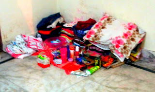 | JOURNEY INTERRUPTED: Reingamphy’s clothes and toiletries stacked in a corner |